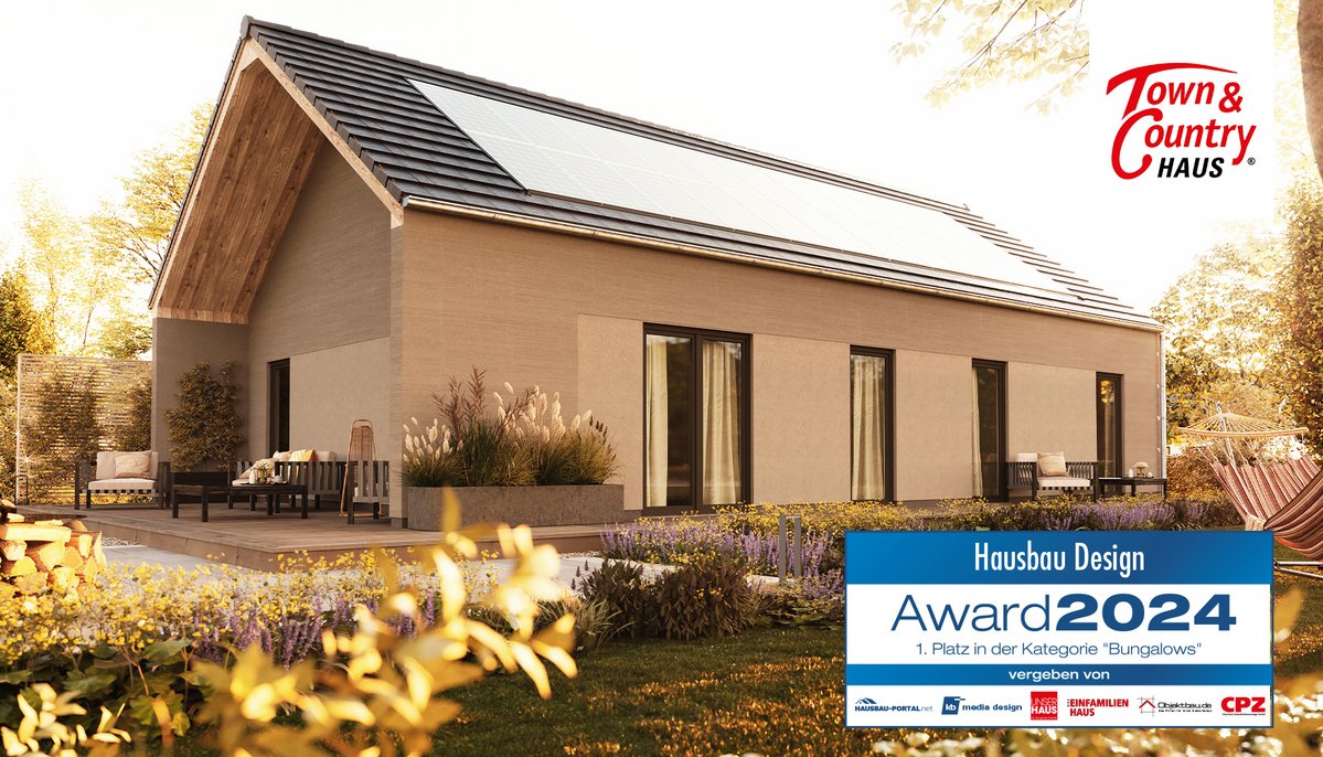 Jedes Jahr dürfen Hausanbieter bei dem renommierten Hausbau-Design-Award ihre schönsten Haustypen in verschiedenen Kategorien ins Rennen schicken. So war auch Town & Country Haus mit drei Massivhäusern nominiert. Bis 31. August durften Sie abstimmen, nun wurden Ihre Stimmen ausgezählt und wir dürfen uns über den Sieg in der Kategorie "Bungalow" freuen.